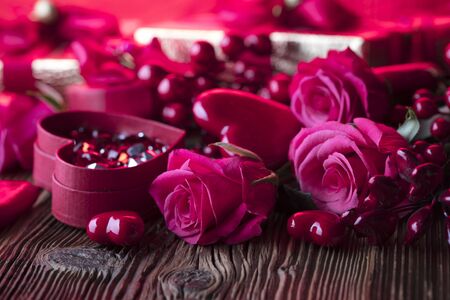 valentine's day concept on pink background. Love, gifts. selective focus