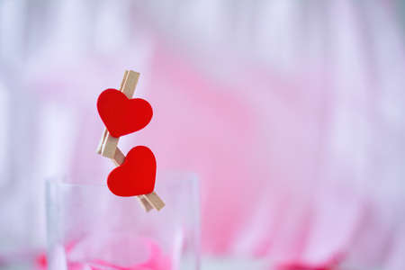 Love composition with hearts on clothespins