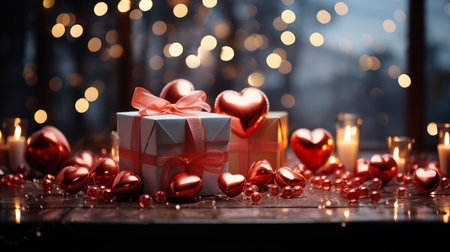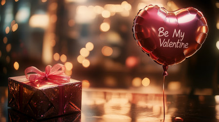 Romantic celebration featuring a heart-shaped balloon and a gift box for Valentines Day
