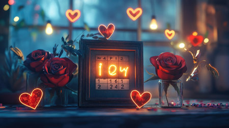A captivating display featuring vibrant roses and glowing hearts, perfect for evoking romance on special occasions. Ideal for Valentine's Day themes.
