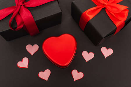 boxes with gifts on a black background,the concept of Valentine's day, anniversary, romantic gift