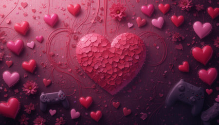 image of a gamepad video game controller for the theme of valentine's day and playing video games together. Concept valentine's day and gaming, video game theme