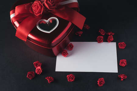 Heart shaped gift box with blank note card, Valentines day