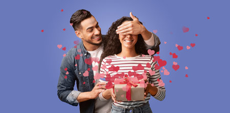 Guy surprise his girlfriend with gift box for valentines day