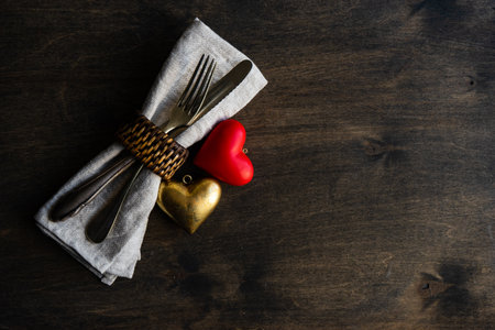 Festive table setting for Valentine s Day with fork, knife and hearts
