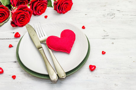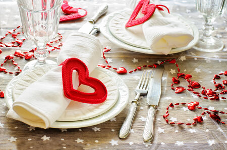 Place setting for St. Valentine Day dinner