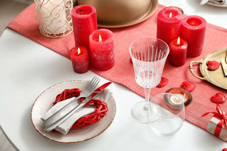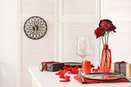 Table set for celebration St. Valentine's Day