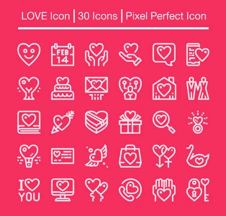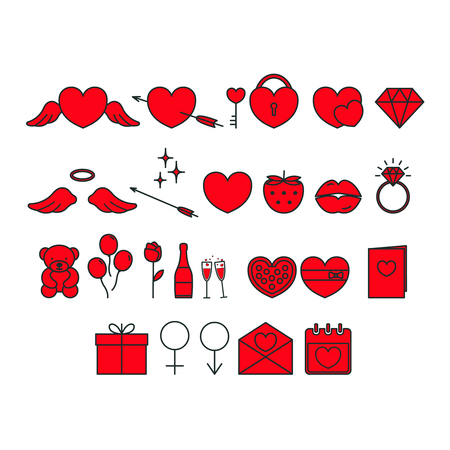 Valentine's day icon set. Flat line vector illustration.
