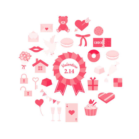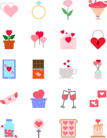 Colorful and flat Valentine's set illustration material