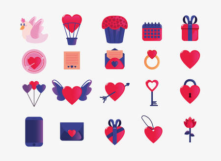 bundle of valentines day set icons vector illustration design