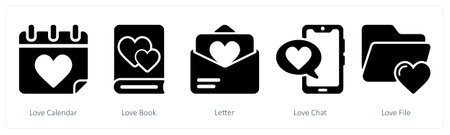 A set of 5 valentine's day icons as love calendar, love book, letter