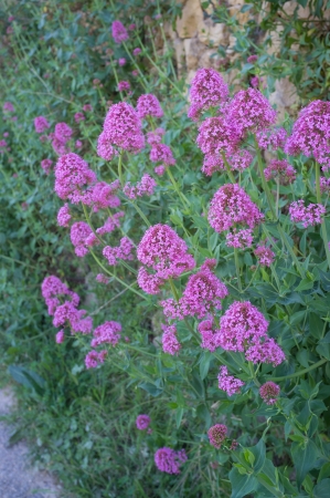 Red valerian bush in full blossom