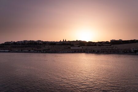 Panoramic view of Valletta at sunset, Malta.