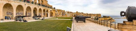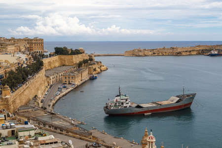 VALLETTA, MALTA - OCTOBER 30, 2015 : General view of Valletta, Malta island with seascape, port and historical limestone buildings from medieval times.