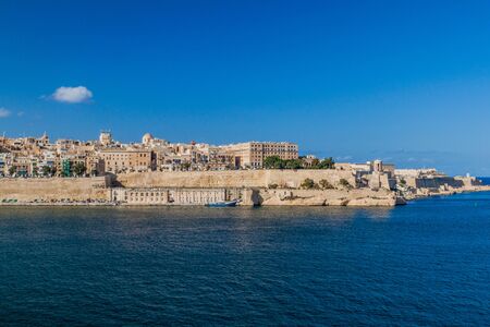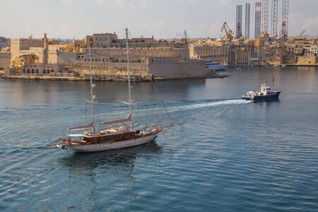 View from the boat on picturesque gulf and Three cities, Malta