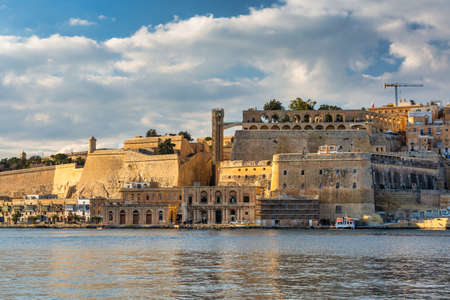 Grand Harbour in the evening in Malta, view from Valletta side.