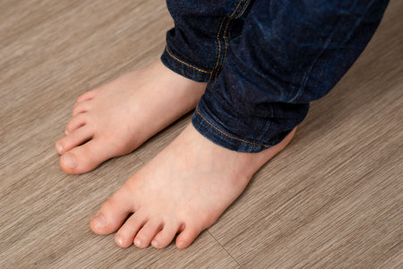 Delicate child's soles grace the floor as tiny bare feet make contact, revealing the purity and simplicity of early life