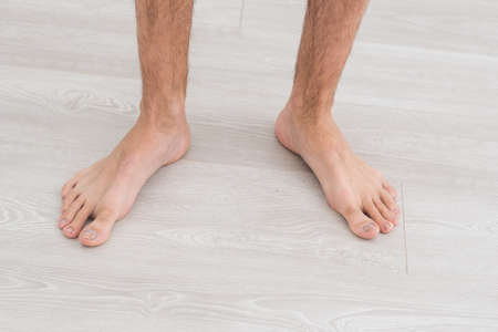 Legs of a man with a pronounced flat feet. Front view. Diseases of legs and joints.