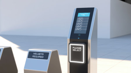 Bike sharing station interface showing available bikes and safety requirements