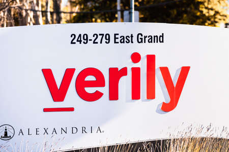 Feb 2, 2020 South San Francisco / CA / USA - Verily sign at their headquarters in Silicon Valley; Verily Life Sciences is Alphabet Inc.'s research organization devoted to the study of life sciences