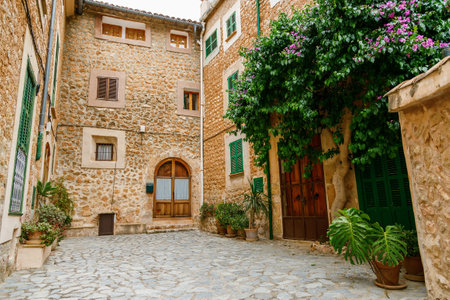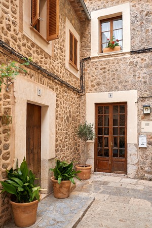 Cozy courtyard with old traditional houses in a small village Fornalutx, Mallorca