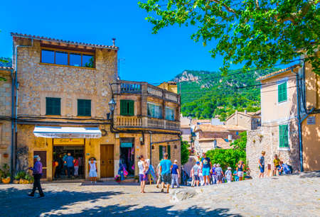 VALLDEMOSSA, SPAIN, MAY 26, 2017: People are strolling through a narrow street in the spanish town Valldemossa at Mallorca