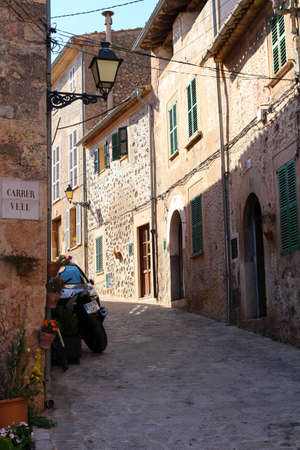 VALLDEMOSSA,SPAIN-MARCH 6,2018: Ancient street view, village of Valldemossa, Majorca Island, Spain.