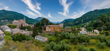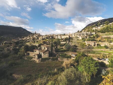 Valldemossa Mallorca or Majorca Spain aerial panorama view historic and authentic spanish mountain village