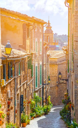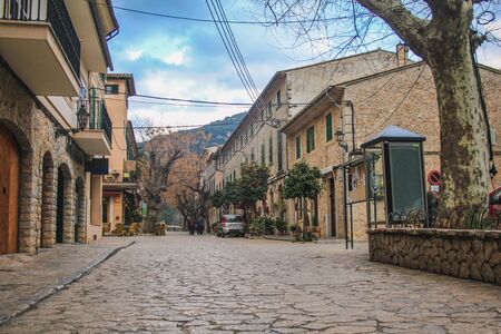 Beautiful views of a street in the picturesque and famous town of Valldemosa, Mallorca, Balearic Islands, Spain
