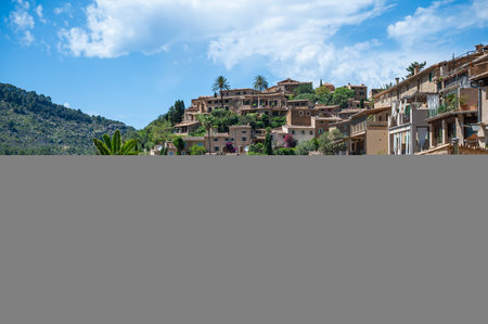 Cityscape of Deia, Mallorca with buildings on a hill during great weather, Majorca