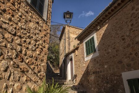 Picturesque stone street in Mallorca island. Bunyola village. Baleares