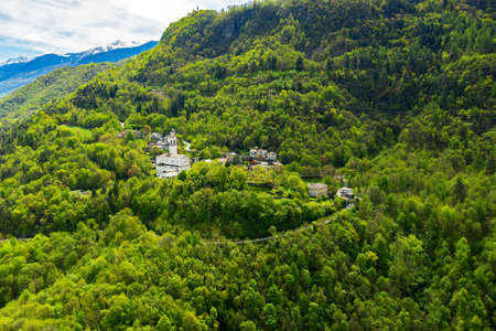 Valtellina (IT), Aerial view of Sazzo in Piateda