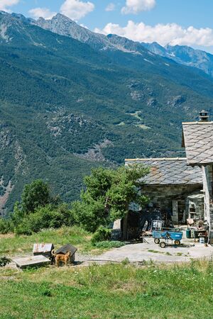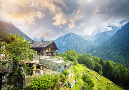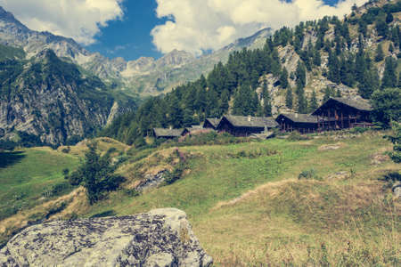 Traditional alpine village in Divedro Piedmont valley, alpe Devero Piedmont; Italy