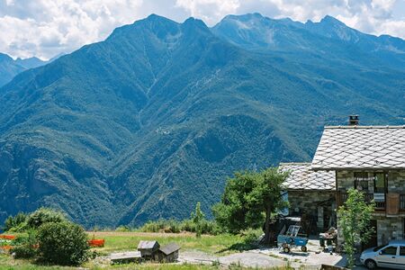 Panoramic view of Nomaglio (Torino, Piedmont, Italy) and the Aosta Valley at summer