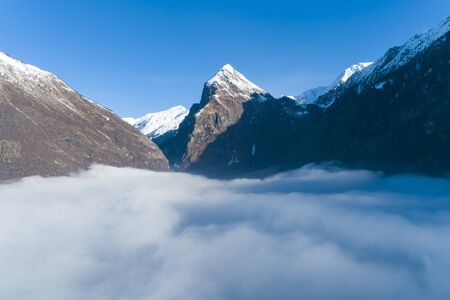 Aerial view with drone of a mountain in Campo Blenio. Ticino Switzerland