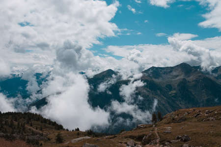 Cloudscape in the Alps with mountains in background (Peio, Trentino, Italy, Europe)