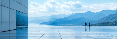 Stunning mountain vista, showing lush green slopes and distant peaks under a clear sky. Serenity and tranquility abound in this picturesque alpine landscape.
