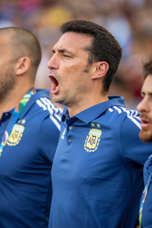 io de Janeiro, Brazil - June 28, 2019: Argentina coach Lionel Scaloni during the 2019 America Cup game in the Round of 8 at Maracana Stadium.