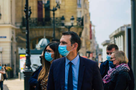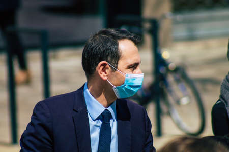 Reims France April 20, 2021 Laurent Jacobelli, spokesperson for the Rassemblement National supports the demonstration of the police forces which takes place in front of the court of Reims in France