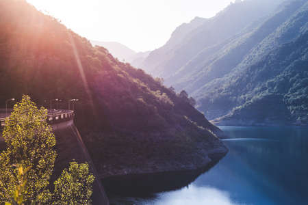 Beautiful alpine view of a green lake with a dam at the famous Grossglockner High Alpine Road, Salzburg, Austria