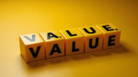 Captivating arrangement of letter tiles spelling VALUE on a marble surface. This image represents the concept of worth and investment, ideal for business and education themes.