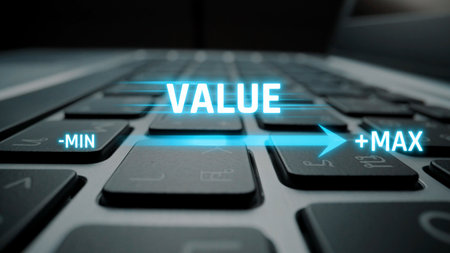 Value measurement and adjustment concept showing value, performance, and optimization level with focus on data analytics, calibration, and improvement