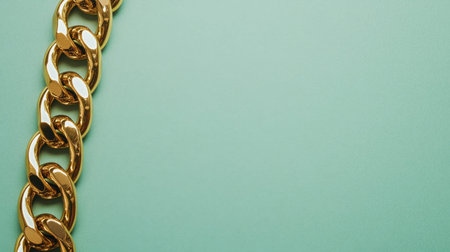 This image features a luxurious gold chain laid against a soft mint background, highlighting its glossy finish and intricate design, ideal for fashion themes.