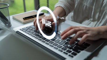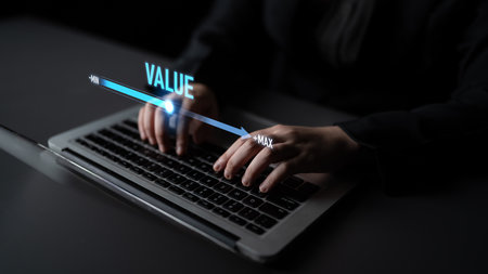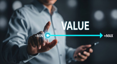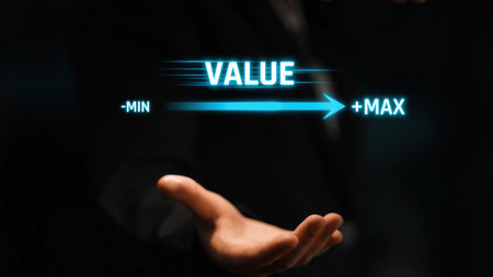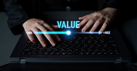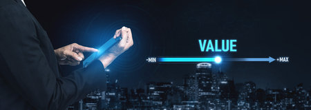 Value measurement and adjustment concept showing value, performance, and optimization level with focus on data analytics, calibration, and improvement
