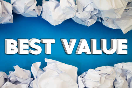 Best Value text with Torn, Crumpled White Paper on colored background.