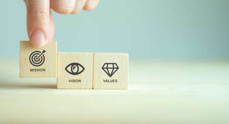 Mission Vision Values text, handwriting with chalk on chalkboard