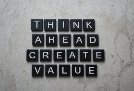 Create lasting value concept illustrated with wooden letter tiles arranged on a clean white surface, emphasizing inspiration and motivation in business.