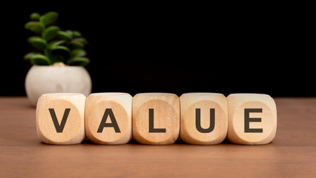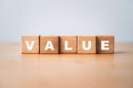 Concept word 'value' on cubes on a beautiful wooden table. White background. Business concept.
