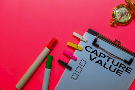 Business and finance concept. On a red background are paper clips and a sign with the inscription - CREATE VALUE
