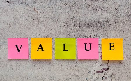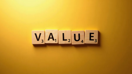 Captivating arrangement of letter tiles spelling VALUE on a marble surface. This image represents the concept of worth and investment, ideal for business and education themes.